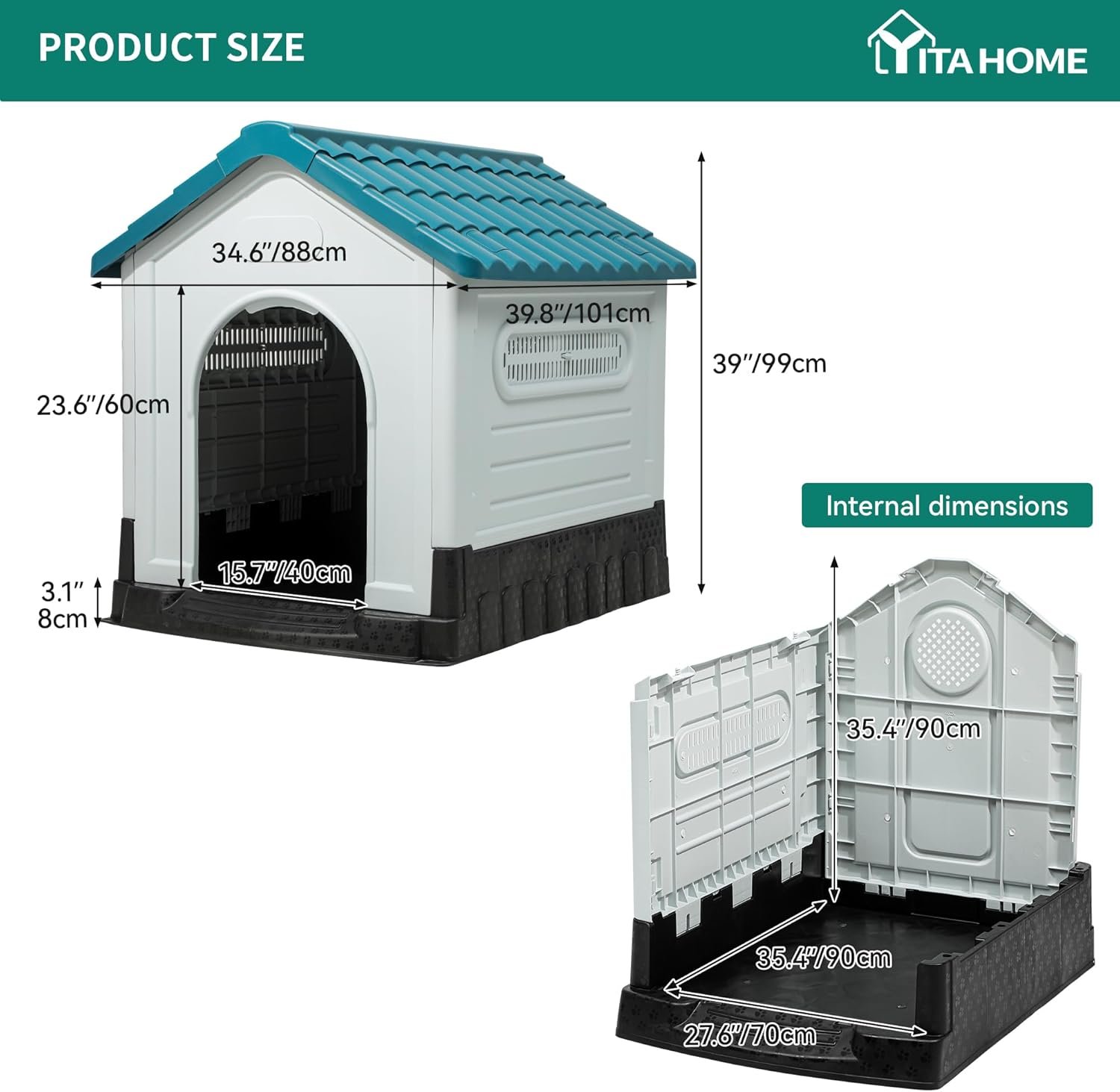 • Folding Storage and Easy Setup: Simply remove the top part for easy folding storage and convenient transport; It only takes 15 minutes to fully assemble this outdoor dog house; Smooth texture and detachable roof allows for easier cleaning and maintenance
